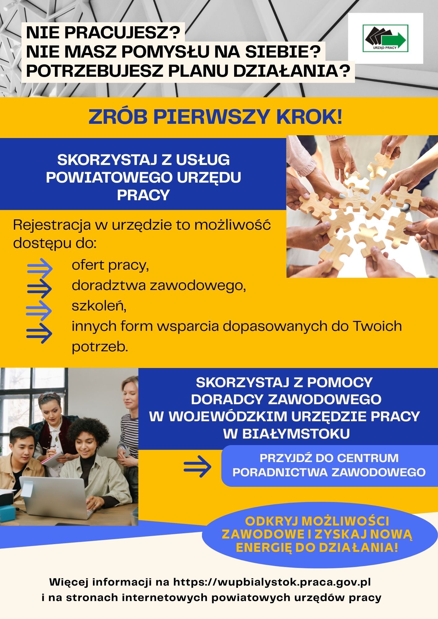 Szczególną uwagę poświęcono poradnictwu zawodowemu, prezentując serię publikacji „Podlaski warsztat doradcy zawodowego”, które oferują narzędzia i scenariusze warsztatów dla doradców i osób poszukujących pracy. Dokument uwzględnia także projekty wspierające rozwój zawodowy oraz materiały szkoleniowe dla pracowników urzędów pracy. Całość stanowi obszerne źródło wiedzy i wsparcia dla osób aktywnych zawodowo, pracodawców oraz instytucji rynku pracy w regionie podlaskim.